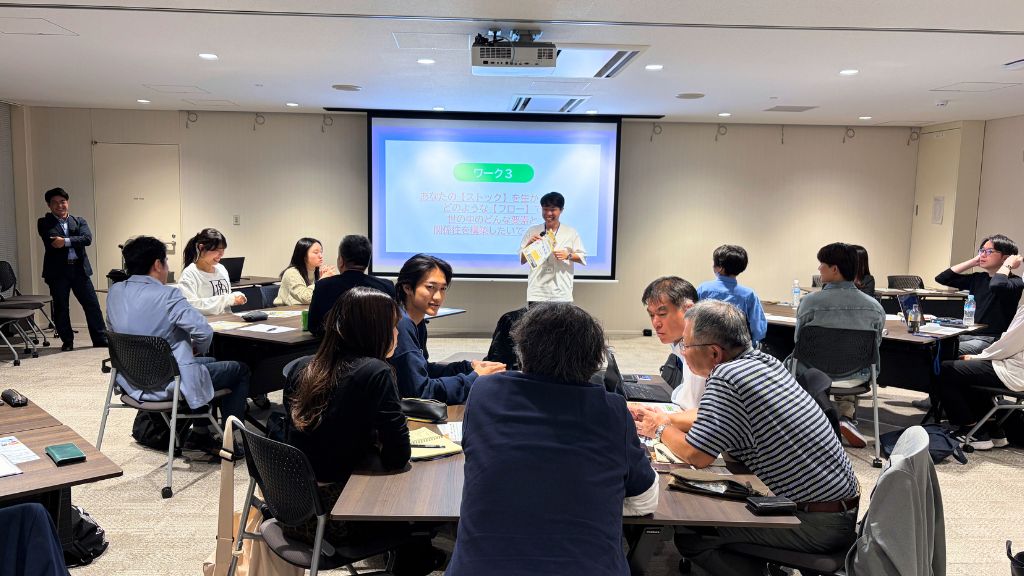 【どんな「変化しない潮流」を変えたいか?そのために自分はどのような「変化しない傾向」を変えますか?】や【あなたの「ストック」はなんですか?】を題材にグループワークも行い、それぞれの班が発表しました。